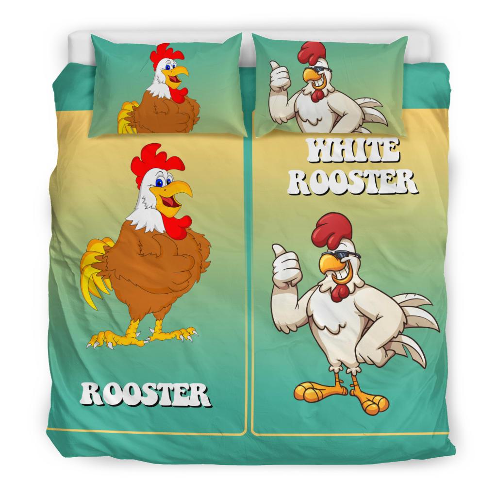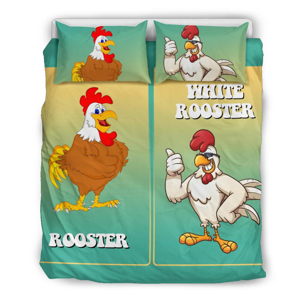 White and Brown Rooster Bedding Set