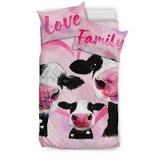 Three Pink Cows Love Family With Heart Bedding Set