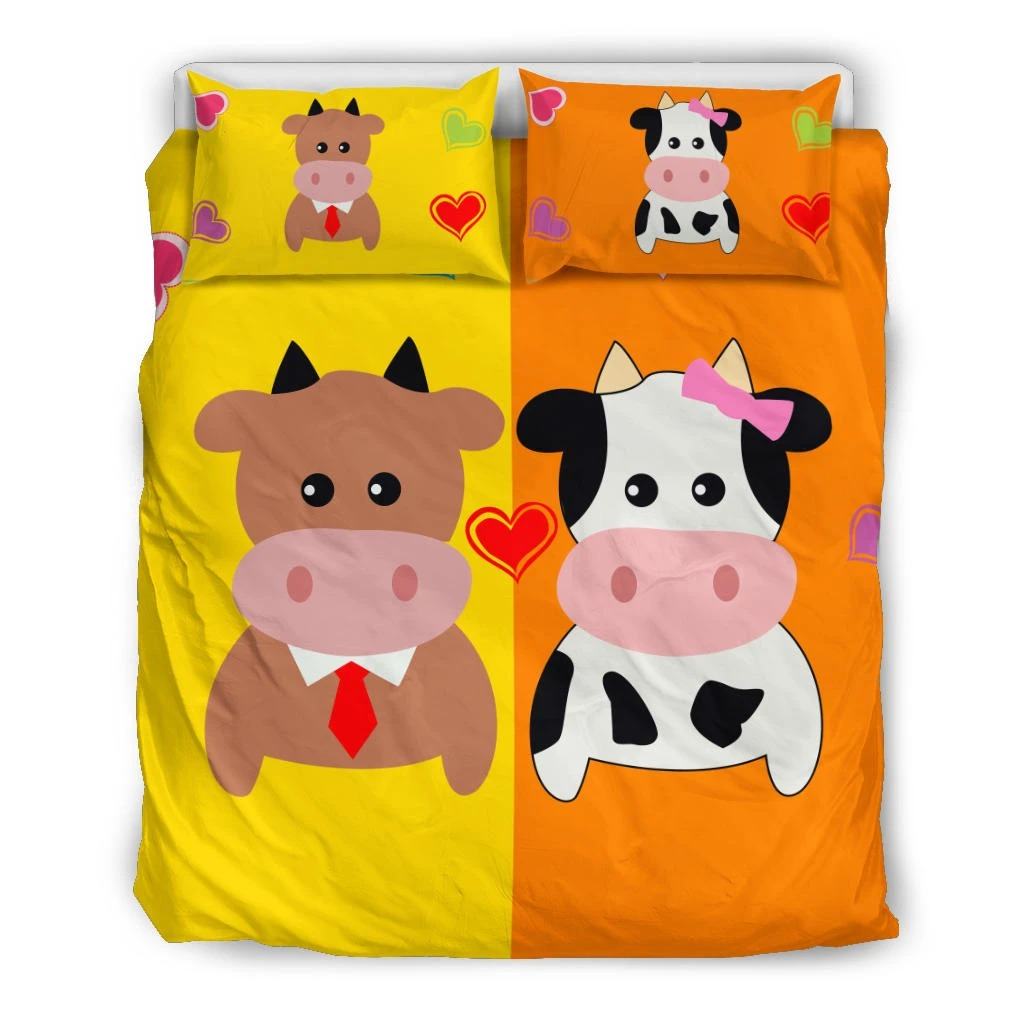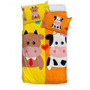 Cute Cartoon Cow Lady and Gentleman Bedding Set