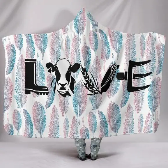 Cow Love Letter Hooded Blanket