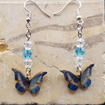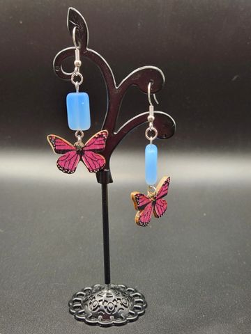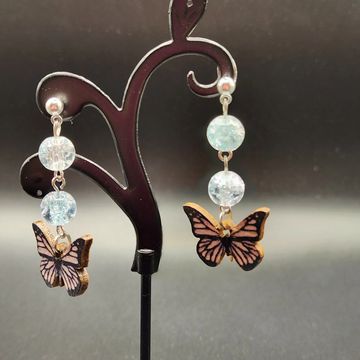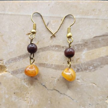 2 inches long wood and glass bead earings