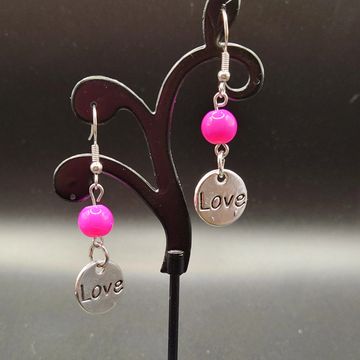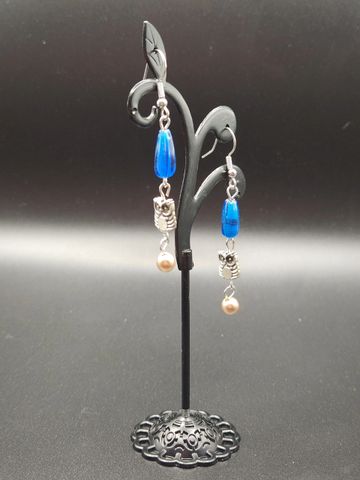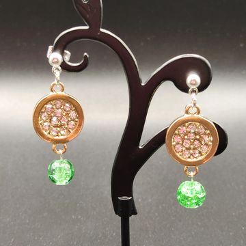 2 inches long metal and glass bead earings