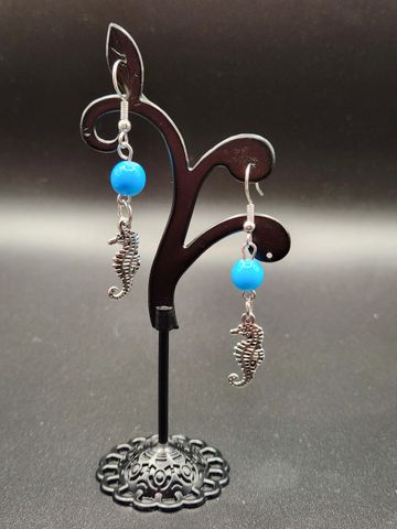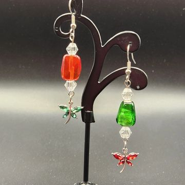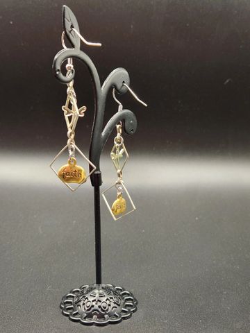 1 1/2 inches long metal and glass bead earings