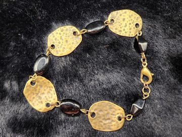 Black glass beads with Brass colored metal