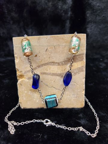 A mix of blue and green glass beads