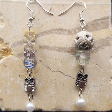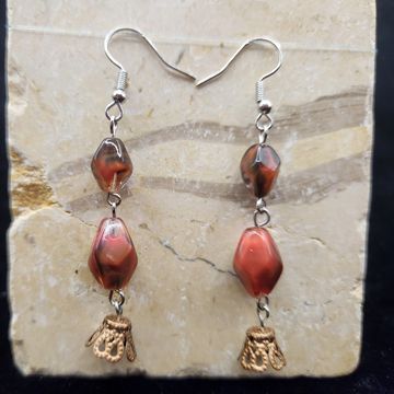 3 inches long stone, metal, and glass bead earings