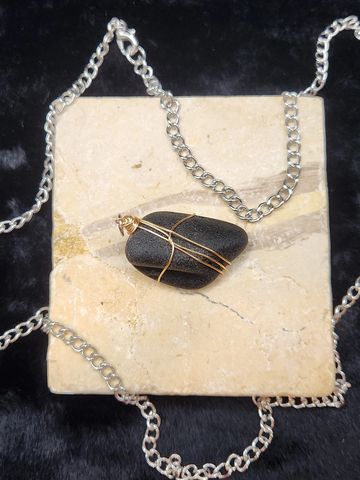 Wire wrapped Black sea glass. Black sea glass also known as "Pirate Glass" is from between 1700 and 1860