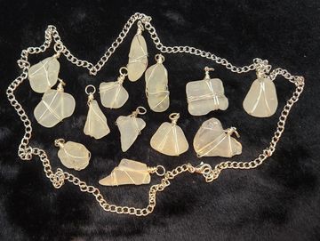 Wire wrapped white sea glass. $5 Each or $10 with chain