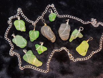 Wire wrapped Green sea glass. $5 Each or $10 with chain